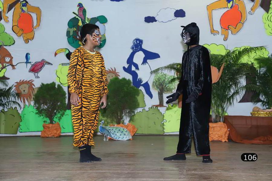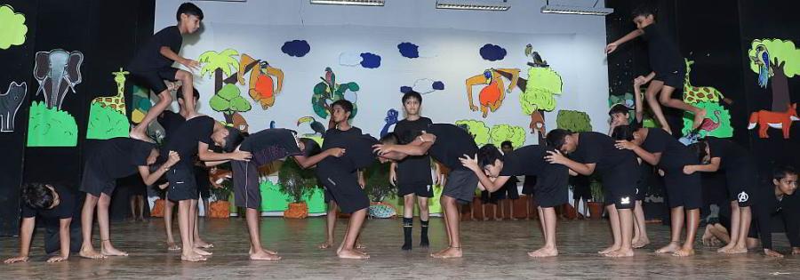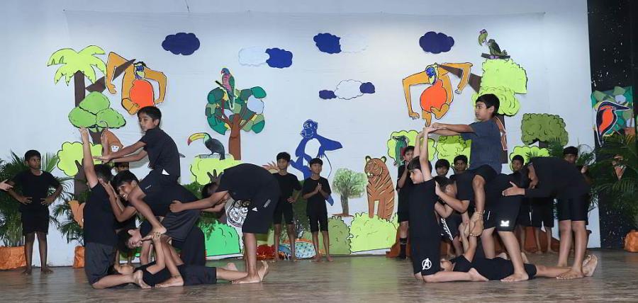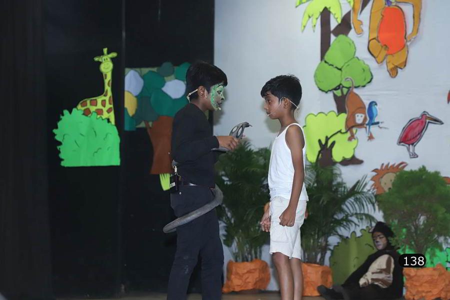 Against a beautiful backdrop of a forest, made by our craft teacher Master Joy Carvalho, the timeless classic - The Jungle Book, was staged. Under the able direction of our speech and drama teacher Master Conan Pereira, the boys beautifully enacted their characters, enthralling the audience with their acting skills.