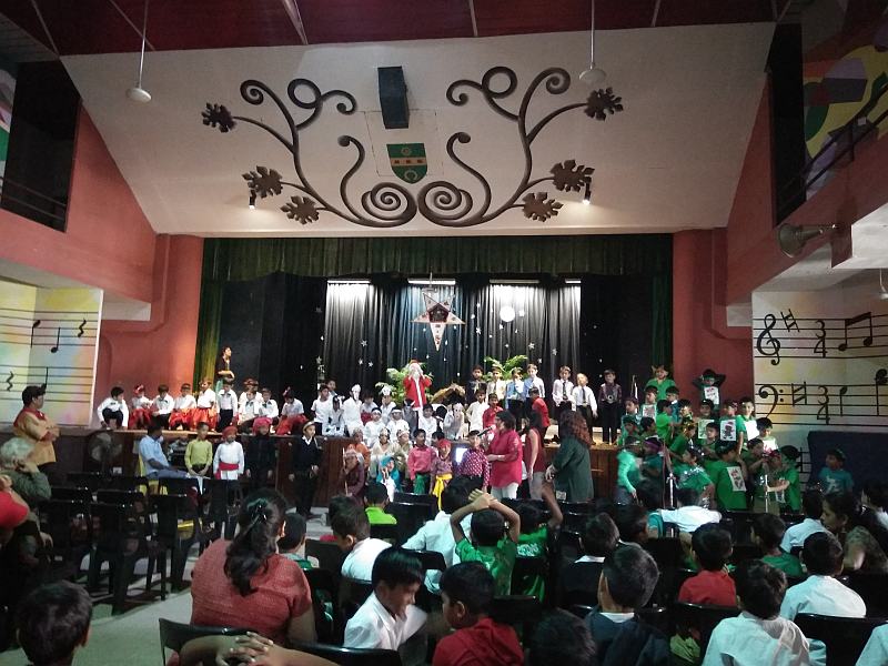It was a beautiful morn on the 20th of December There was a frantic bustle in the hall upstairs; std. 2 teachers taking care of costumes, checking sound and lights and peons setting up chairs and props.