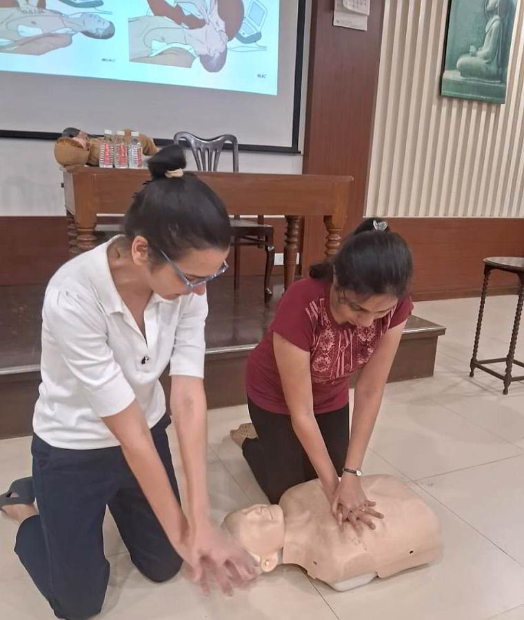 Dr. Farzin covered topics related to events that occur in the school and how we as Teachers and non medics can administer the immediate aid needed in a particular situation .Dr. Farzin also went on to demonstrate how CPR is carried out in case of a cardiac arrest and encouraged some of the teachers to get a hands on experience of the same on a mannequin .
