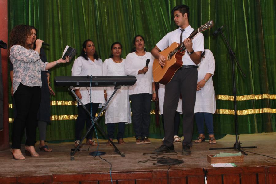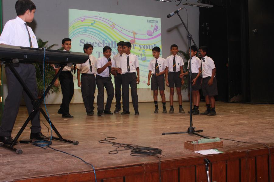 Tr Yvette made her grand entry at 10:15 am with her family and then was escorted to the hall by the school band in full honour. The Principal, Mrs Anna Correa, Fr Malcolm and Sr Arokia accompanied her to the auditorium as the students gave Tr Yvette a standing ovation. The programme commenced with a prayer service by the PTA, followed by a cultural programme of skits, dances and songs put up by the teachers and students.