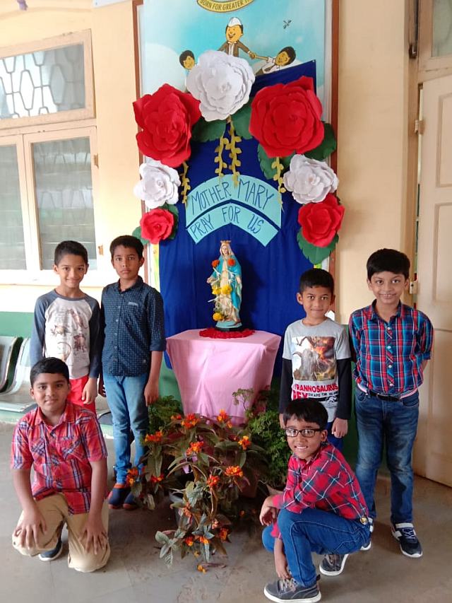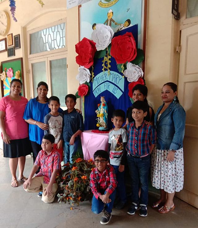 The teachers prepared a prayer service. The prayer service included videos from the life of Mother Mary that depicted the values she possessed such as obedience, humility, selflessness, service, empathy and Mary as our intercessor. Each video was followed by a prayer. There were Marian hymns played too. The prayer service ended with a video showing how people of different faiths come to visit Mother Mary at the Mount in Bandra.