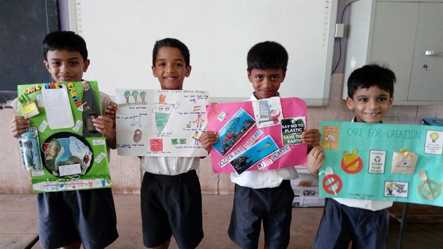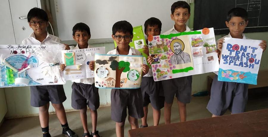 While the boys of Std.III and IV participated in a poster competition depicting how they can be a ‘Man For Others’, keeping in mind also the theme of ‘Care For Creation and Ban On Plastic’.