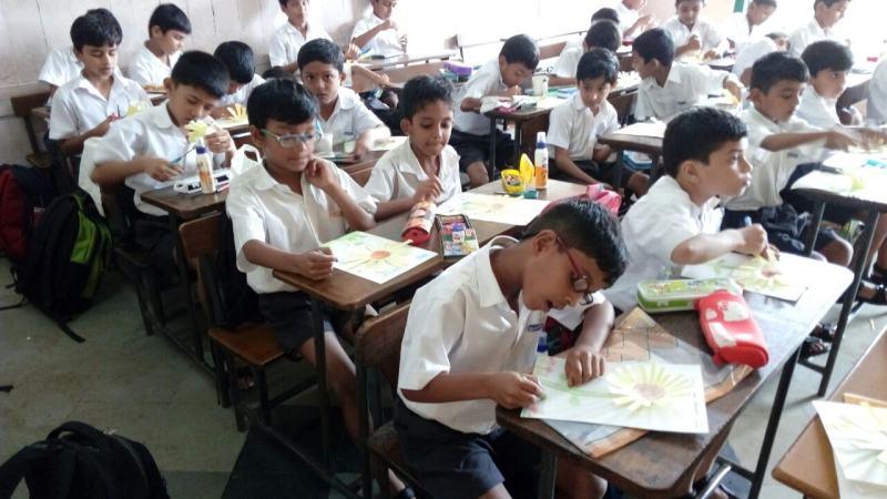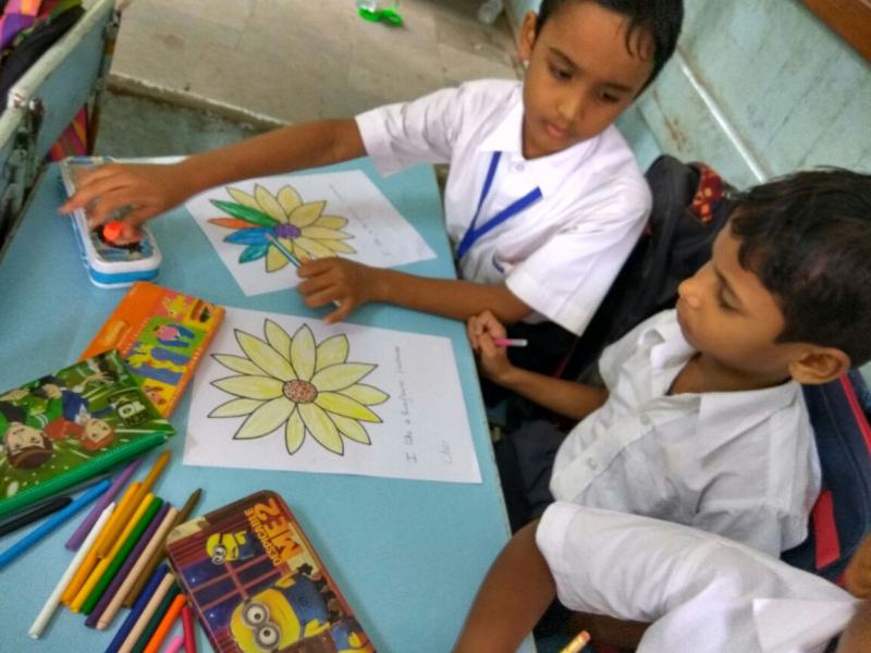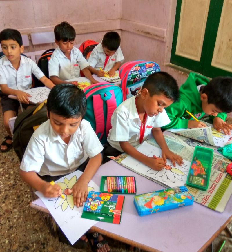 The boys of Std 1st were given to colour a sunflower and complete the sentence ‘I like a sunflower because….’ They displayed their skill of colouring to perfection and the sentence given was also well completed by them.