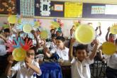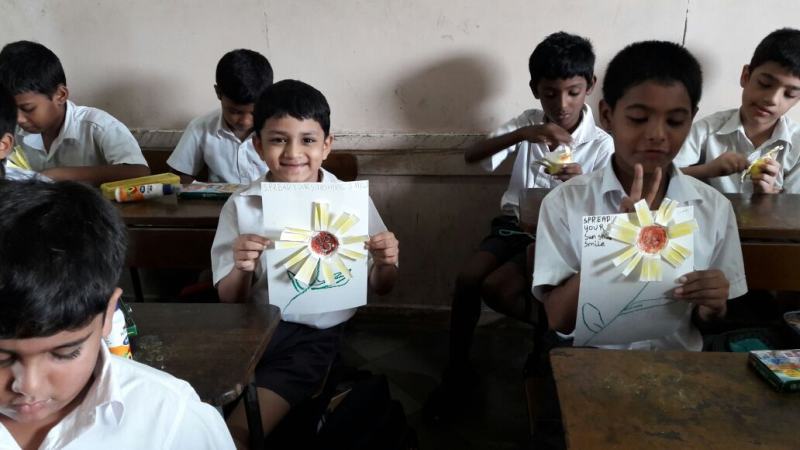 The boys of standard three made a sunflower out of a paper cup. The boys had to colour, cut the cup and stick it on paper. The boys also had to write the sentence, ‘Spread your sunshine smile’ and draw a face for the sunflower.