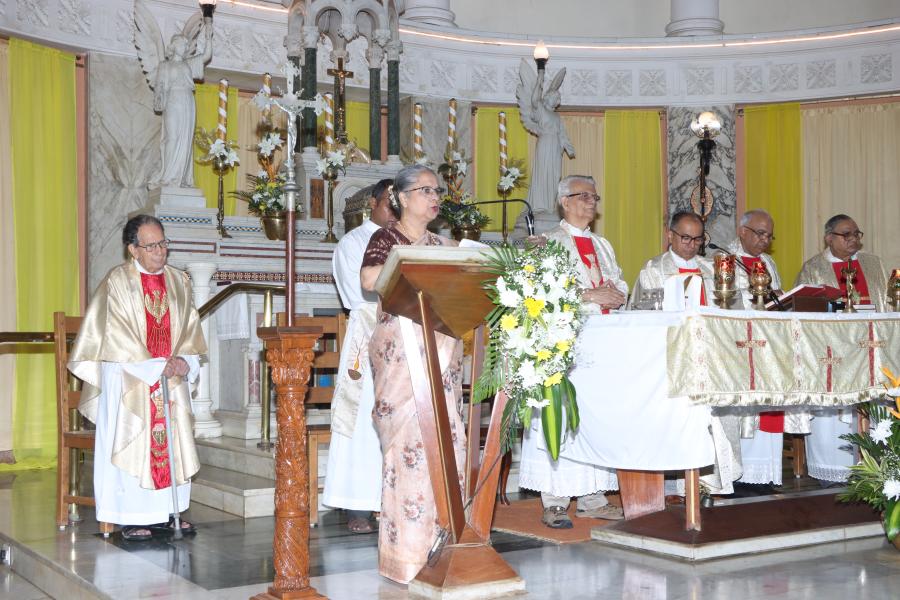 We began the celebration with Holy Mass. It was a great joy to have our manager, Rev. Fr. Luke Rodrigues to be the main celebrant at the Eucharist. Catholic students of the Primary, Secondary and IG section participated in the Eucharistic celebration. The liturgy was beautifully, planned and representatives of students, teachers, ex-teachers and the non- teaching staff at the celebration, brought out the oneness/unity at St. Stanislaus. The entire congregation was served cake at the end of the mass. The mass was followed by a sumptuous brunch sponsored by ex-students of the batch of 1975.