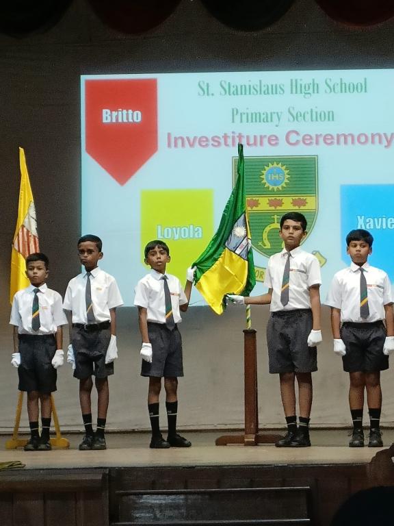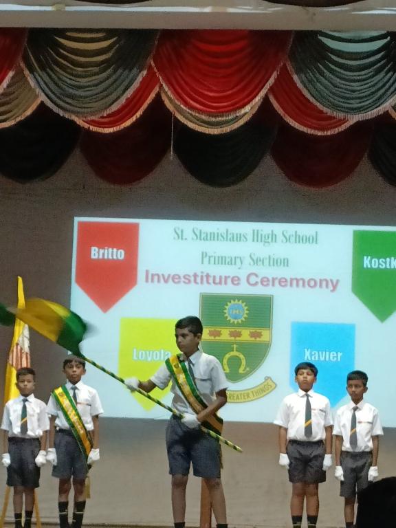 The investiture ceremony held on 9th July, 2025 in the school hall marked a significant event where leadership roles were bestowed upon fifteen students of the primary section. It was attended by the proud parents of our leaders, students and teachers of the primary section. Being a solemn event, the ceremony started with a prayer after which the newly appointed leaders, (Nathan Pires - School Captain, Nitya Wadikar - Asst. School Captain, Kevin Thevar and Vihaan Makwan - Britto House, Immanuel Jasper and Rehan Shaikh - Loyola House, Zain Manihar and Shiraaz Memon - Xavier House, Ezekiel Misquitta and Advait Kawanpure - Kostka House, Vernon Fernandes - Sports Captain and Andre Menezes - Asst. Sports Captain, Sherwin Fernandes, Aashir Siddique and Ricardo Pereira – Leaders), took the pledge to serve as members of the school council for the year 2025 - 2026. The headmistress, Tr. Raynah Lemos presented each student of the school council the badge of honour and sash denoting their respective positions.