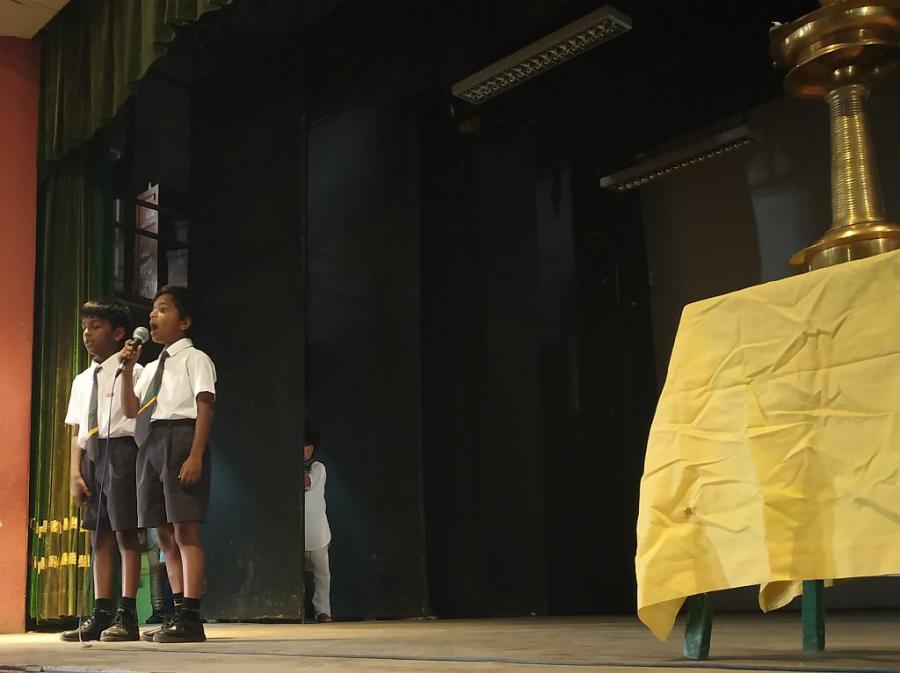 After a short introduction about Republic Day, the programme began with a prayer service. The boys sang the hymn ‘This little light of mine’ as Tr. Jennifer Pereira, the headmistress of the primary section, along with four students dressed in their traditional outfits lit the Samai. This was followed by prayerful petitions made for our country. The prayer service ended with the singing of the hymn ‘Bind us Together Lord’.