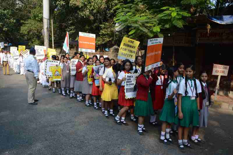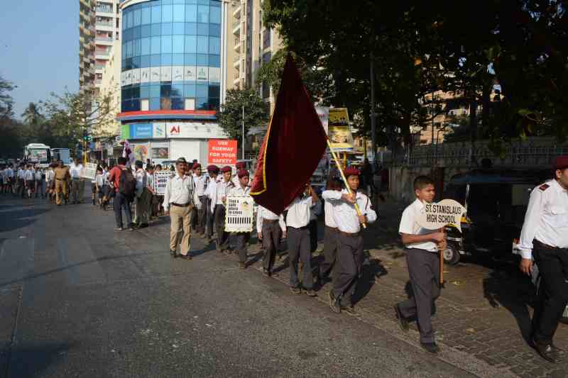The students of the neighbouring schools gathered at St. Stanislaus School and walked down Hill Road with banners and placards spreading the message of Road Safety to all citizens.