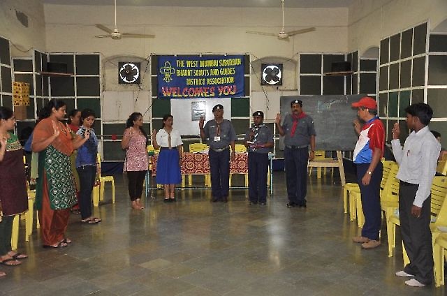 Fr. Jude Fernandes S.J. (Principal ) was the Chief Guest and Mr. Dilip Govind the Depty. Education Inspector was the Guest of Honour. Mr. R. Bacchav the State Organisation Commissioner (Scout) was in attendance. 41 Scout Masters & Guide captains from 20 schools were present for this programme. Out of these 20 schools, many of them were newly registered into the Scouting and Guiding movement under the able guidance of Mr. Leonard Gonsalves (District Chief Commissioner) and Mr. Elias Corriea (Asst. District Commissioner) Scout and Mr. Mahadev Salunke (Dist. Training Co-ordinator)