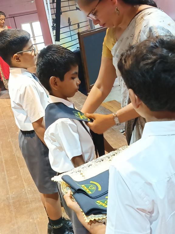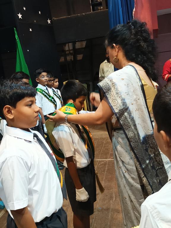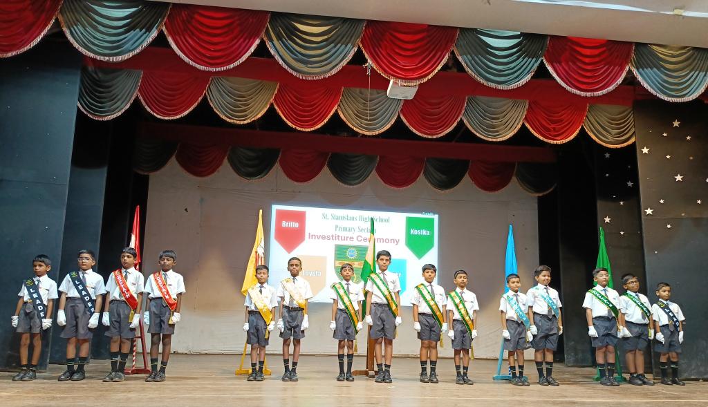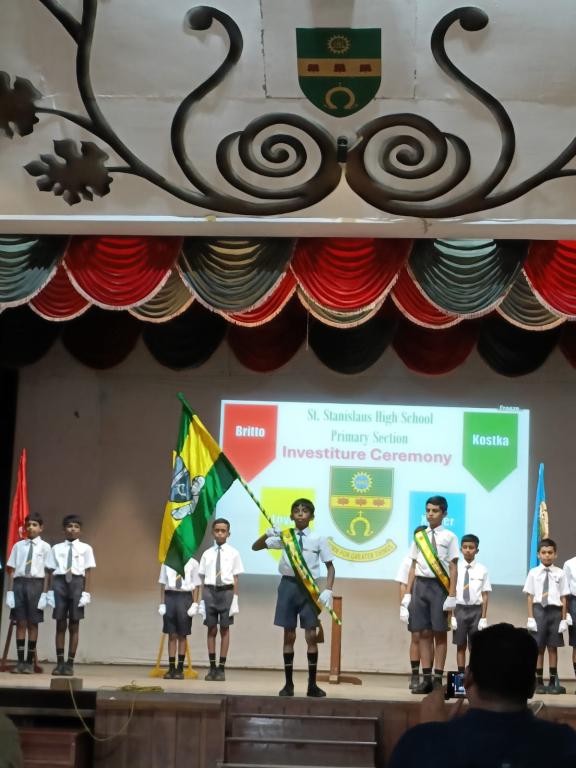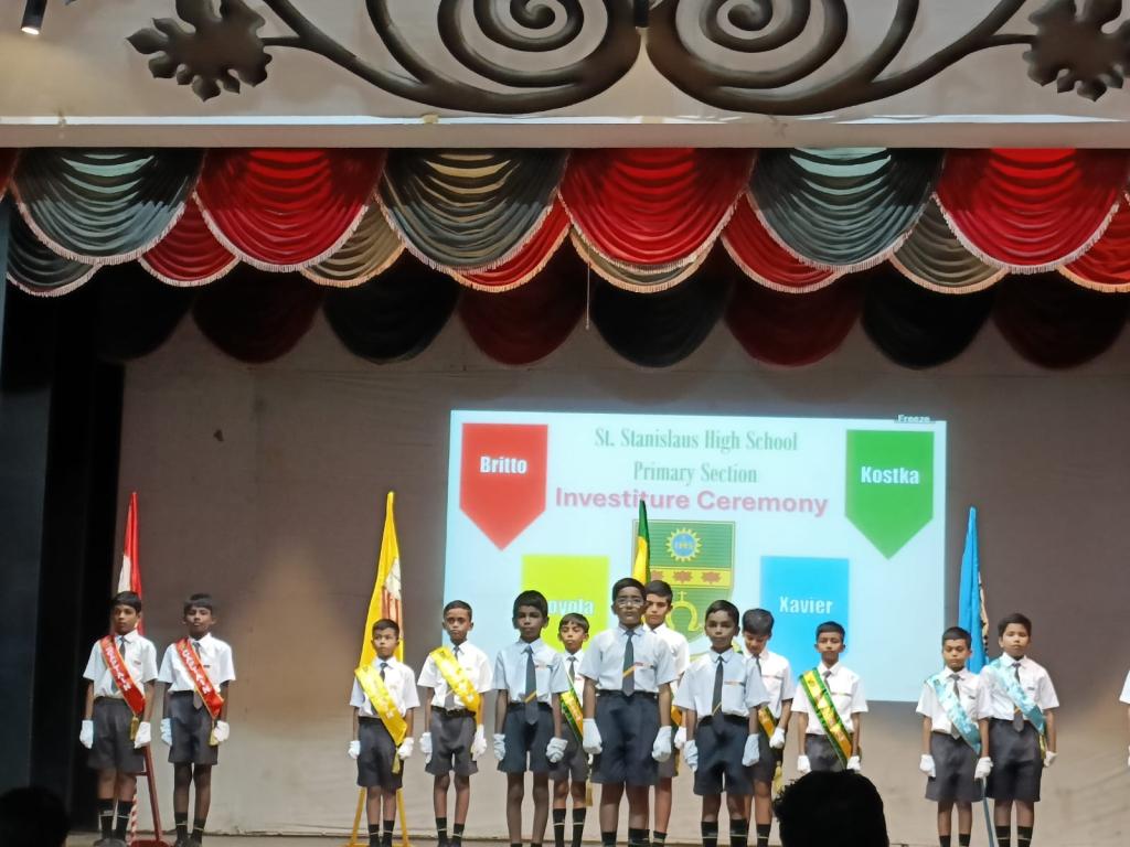 The investiture ceremony held on 9th July, 2025 in the school hall marked a significant event where leadership roles were bestowed upon fifteen students of the primary section. It was attended by the proud parents of our leaders, students and teachers of the primary section. Being a solemn event, the ceremony started with a prayer after which the newly appointed leaders, (Nathan Pires - School Captain, Nitya Wadikar - Asst. School Captain, Kevin Thevar and Vihaan Makwan - Britto House, Immanuel Jasper and Rehan Shaikh - Loyola House, Zain Manihar and Shiraaz Memon - Xavier House, Ezekiel Misquitta and Advait Kawanpure - Kostka House, Vernon Fernandes - Sports Captain and Andre Menezes - Asst. Sports Captain, Sherwin Fernandes, Aashir Siddique and Ricardo Pereira – Leaders), took the pledge to serve as members of the school council for the year 2025 - 2026. The headmistress, Tr. Raynah Lemos presented each student of the school council the badge of honour and sash denoting their respective positions.