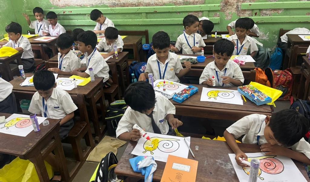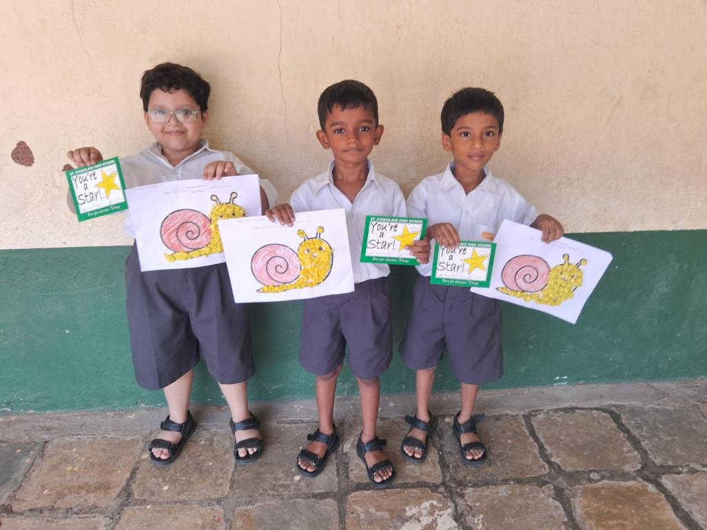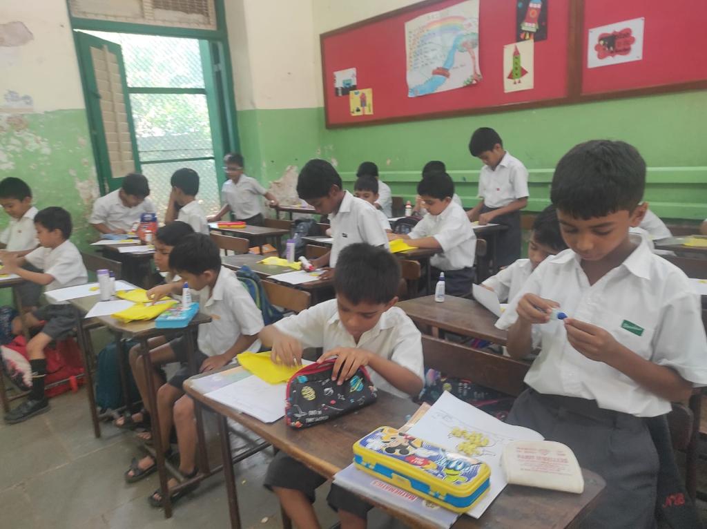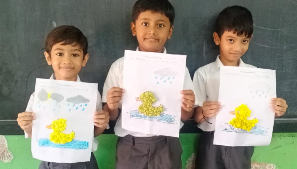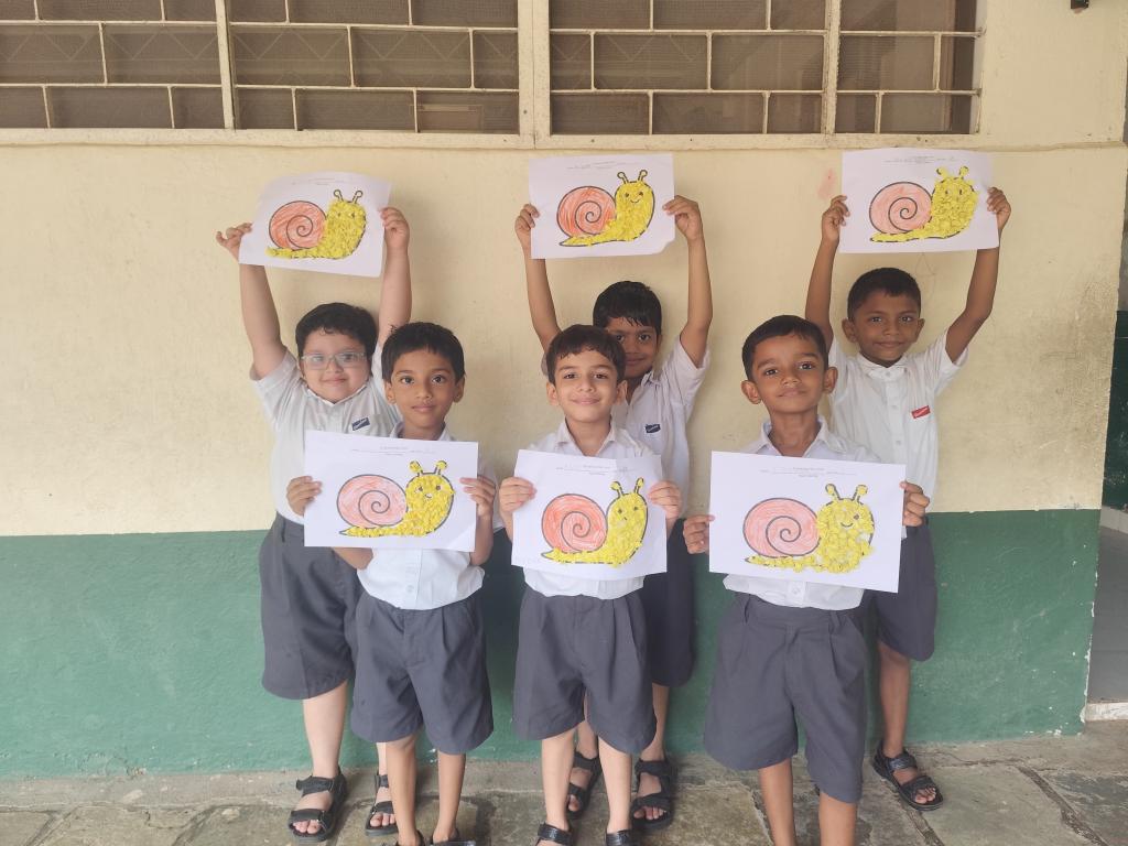 Each student had to crush paper into balls and stick them on a printed picture that was given to them. Teachers encouraged the students throughout the activity. The students followed the instructions given and were focused while doing their work. They worked in a neat and organised manner. It was a fun learning activity cum competition. Three winners were selected from each division and were awarded certificates.