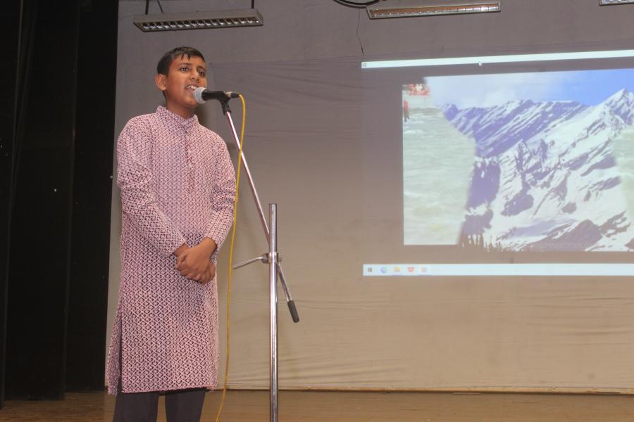 दिनांक 18 अक्टूबर 2023 में ‘हिंदी दिवस कार्यक्रम’ का आयोजन किया गया|कार्यक्रम की शुरुआत दीप प्रज्वलन, प्रार्थना तथा प्रार्थना नृत्य से हुई | कार्यक्रम में नृत्य, गायन द्वारा विद्यार्थियों ने राष्ट्रभाषा के प्रति अपना प्रेम दर्शाया | भारतीय संस्कृति को दर्शाते हुए एक नाटिका का प्रदर्शन भी किया गया| अंत में पाठशाला की मुख्याध्यापिका ने हिंदी भाषा का सम्मान बढ़ाने के लिए तथा व्यवहार में उसका उपयोग करने के लिए विद्यार्थियों को बढ़ावा दिया अंत में आभार प्रकट करके कार्यक्रम समाप्त हुआ|