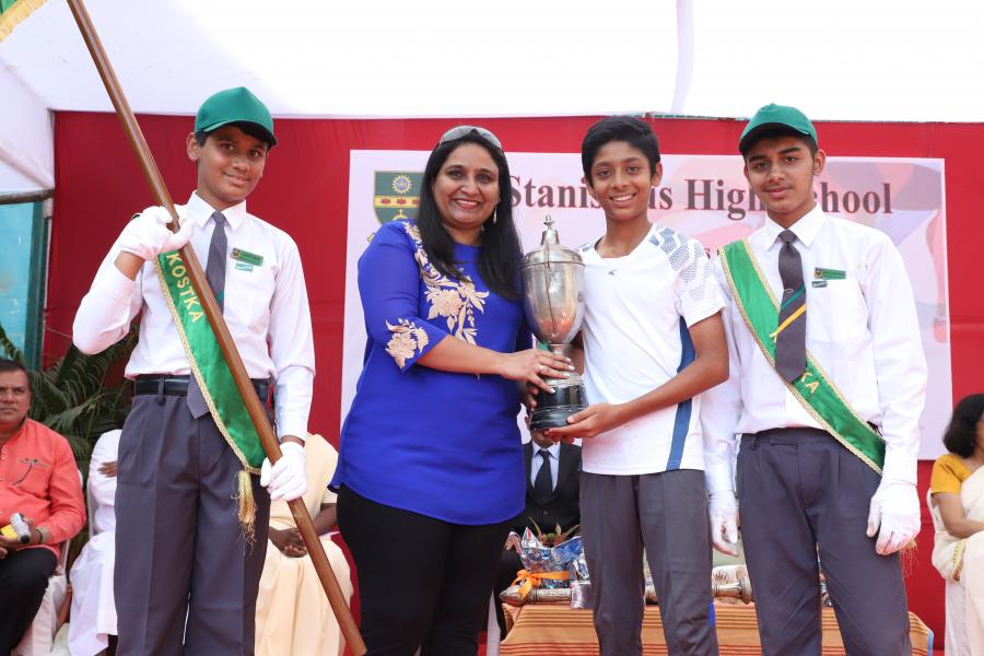The All Round Sportsmen of the School Championship was awarded to Master Arjun Jaiswal of the Kostka House.