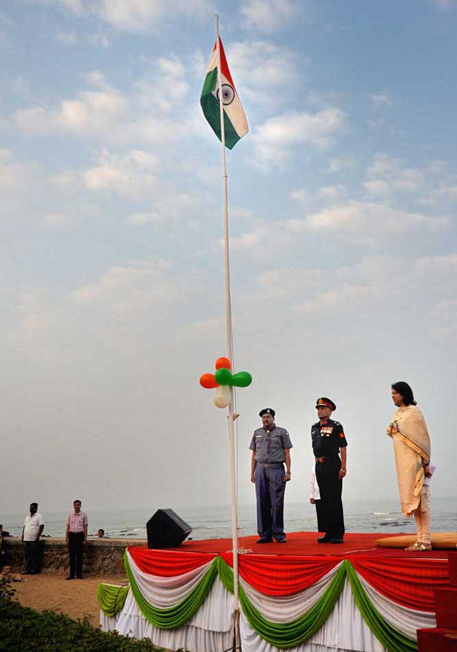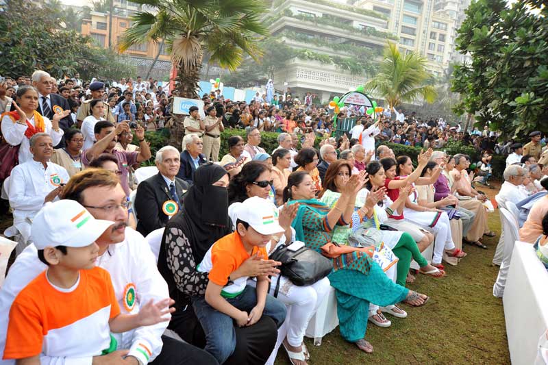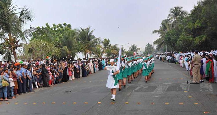 The twenty thousand plus strong crowd already assembled by 6.30am by on B.J. Road to Lands End included students, invited VIP guests, military veterans, teachers and parents from participating schools along with Bandraites, all geared up with patriotic memorabilia to celebrate this event.