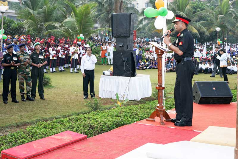 The parade was presided over by the chief guest Maj. General R. R. Nimbhorkar SM**, VSM 'Chief of Staff' for Maharashtra, Gujarat & Goa Area. After inspecting the student troops he proceeded to receive the salute at the reviewing dais..... what an honour for the children who were filled with pride. The parade led by four students on horseback was flagged off at 7.00am by the Addl. Commissioner of Police Western Region Mr. Vishwas Nangre Patil IPS. His Excellency Mr. Richard Bale, Consul General of Canada was the foreign dignitary invited to witness this event. This was done in keeping with the Rajpath tradition in Delhi. The crowd had special reason to applaud once again when the Mistress of Ceremonies Ms Sanjyot Deolalikar announced to all that Maj. General Nimbhorkar was awarded the Ati Vishisht Seva Medal (AVSM) which is a military Honour bestowed to recognize "distinguished service of an exceptional order". This indeed was an honour not only for the Maj. General but for all the participants too.