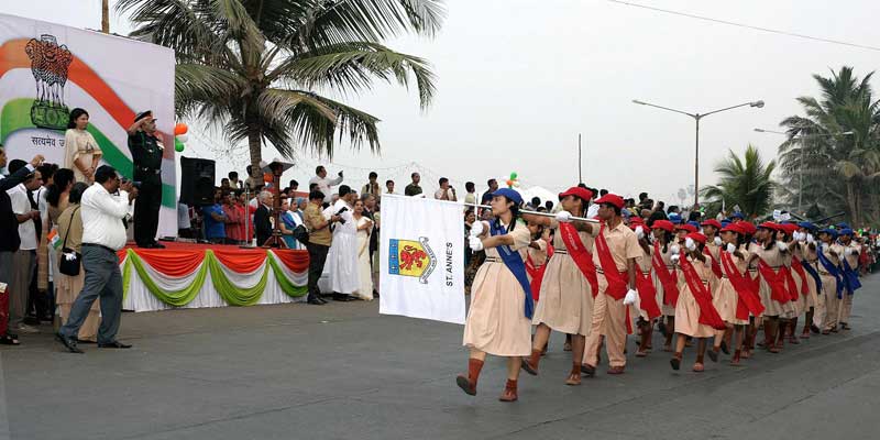 A recitation of the Pledge in Hindi was done by Ms Priya Dutt the local MP who ended with an appreciation for the Indian Armed Forces. This was followed by a short but inspirational speech by the Chief Guest who even used Marathi to reach out to all the students. The marchers then settled down to watch a few cultural heritage performances done by the students which included the Malkhamb (pole gymnastics) , Lezim and Bharat Natayam dances. The Army band gave a short but brilliant display of their musical skills on stage. Finally a comprehensive vote of thanks by Ms Saba Patel principal of Anjuman-i-islam ended by thanking Fr Magi Murzello ( St Andrews High School) Fr Jude Fernandes ( St Stanislaus High School) and Mr. Peter deSouza (Convener) as chief organizers of this event.