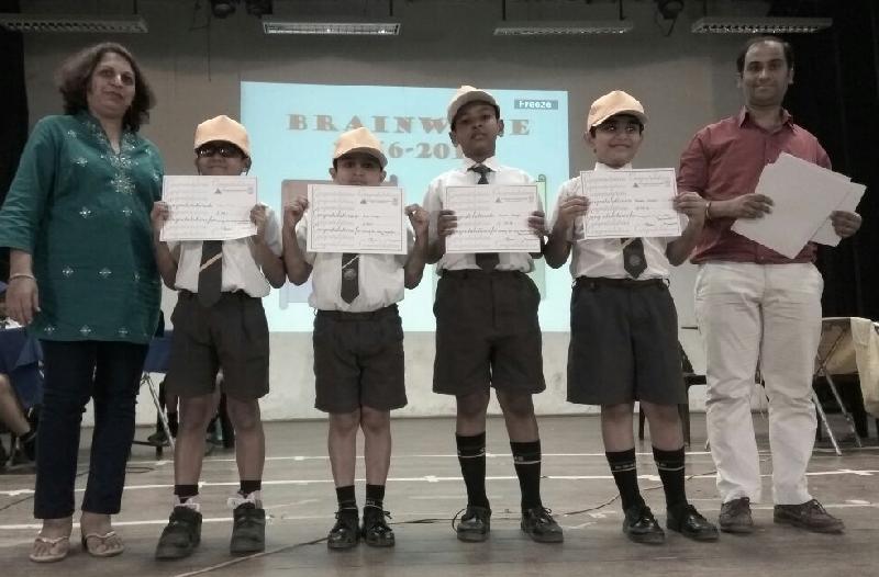 One such activity to check the general knowledge of our boys of Standards 3 and 4 was Brainwave 2016-17, a Quiz held on 16th December, 2016 at 9.30 am in the School Hall. An elimination round was held earlier that month and four students (from each house) were selected to represent their respective houses to be quizzed in different fields such as Sports, Entertainment, Current affairs, Books and Academic subjects such as English, Maths, Science, History, Geography and many more.