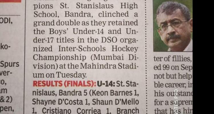 Reigning Champions St. Stanislaus High School, Bandra clinched a grand double as they retained the Boys’ Under-14 and Under-17 titles in the DSO organized Inter-Schools Hockey Championship (Mumbai Division).