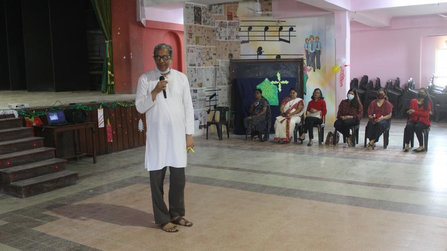 20th December was indeed a fun-filled day as we were celebrating the birthday of Jesus Christ. The day began with the virtual programme for students. A session called ‘Happy Hour’ was conducted for the students based on the Christmas theme. During this ‘Happy Hour’, there were 5 rounds wherein the first round was the ‘Fancy Dress Competition’. Students were dressed up according to the Christmas theme and the best one was selected. Round 2 was the quiz related to the Bible. Round 3 was ‘Who Am I?’ where riddles were asked based on Christmas and in round 4 emojis were shown to students and they had to identify the Christmas song. Lastly there were spot prizes in round 5. Students participated actively and enjoyed the ‘Happy Hour’. Later a small programme was conducted for the staff and the priests. The programme began with a meaningful prayer service followed by Carol singing and then a few games. The day ended with great joy!