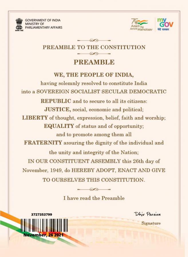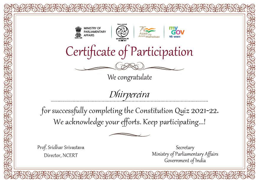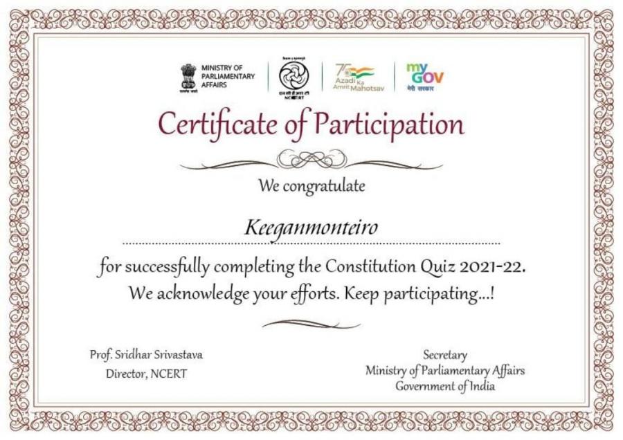 Scouts of St Stanislaus High school took active part in the 'Read the Preamble to the Constitution' and Online quiz on the Constitution of India an initiative by the Ministry of Parliamentary Affair as the Nation celebrates Constitution Day on 26th Nov.21 as the part of the 75th Azadi ka Amrit Mohatsav. The scouts were awarded with E certificates for the Online Quiz and for Reading the Preamble by the Ministry of Parliamentary Affairs of India.