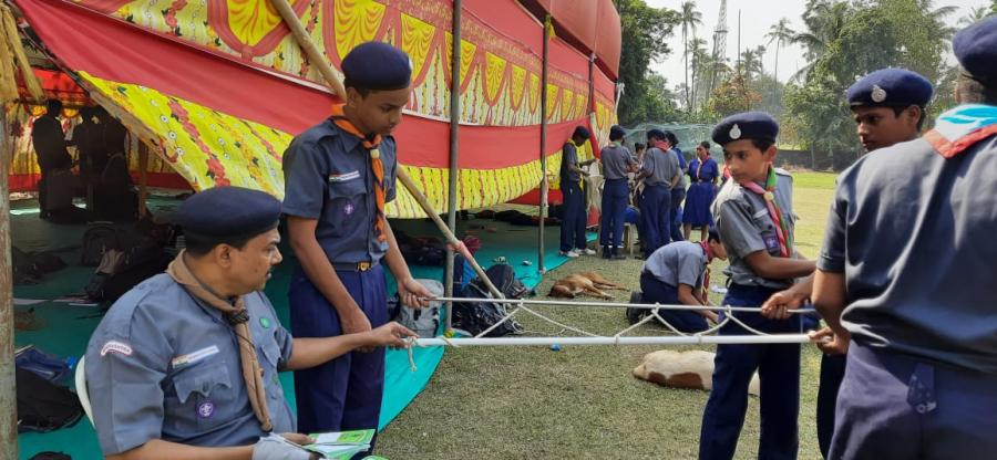 They received training on 11th November and tested on 12th November on Topics such as - knots, lashing, Estimation, First, Compass, Map Making etc.