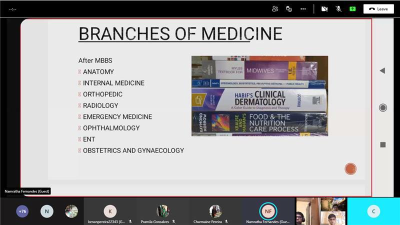 The session started with an introduction by Sir Pathak. Dr. Namrata then gave us in-depth information about the various fields we could choose if we wish to be a doctor. Detailed explanation from the subject choices to the courses that we would need to complete was imparted in this session. Dr. Namrata also made us aware of the different exams that we would need to pass.