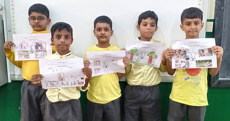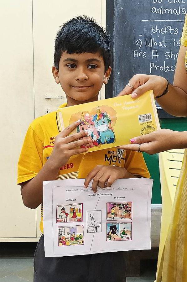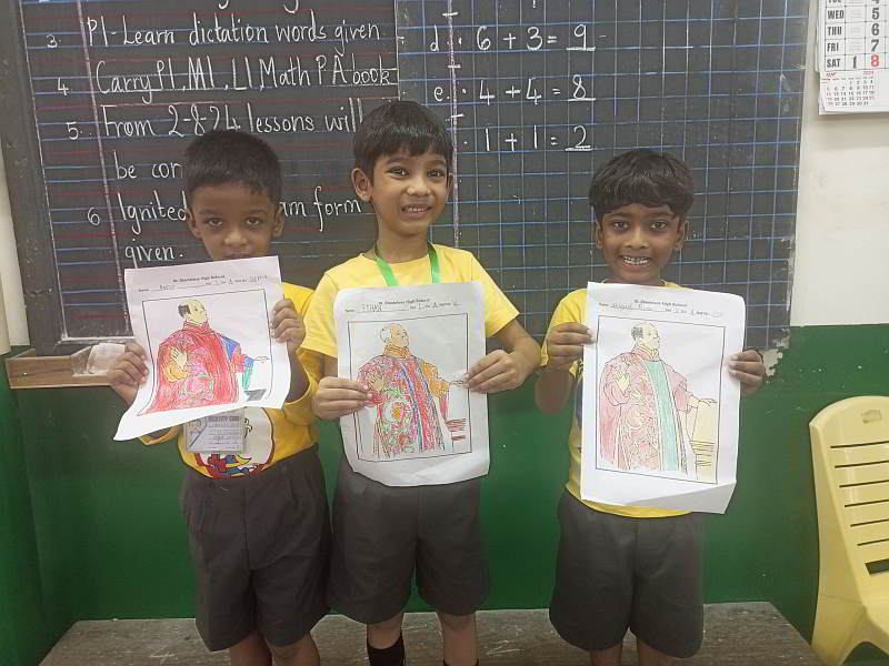 The boys were shown a video on the life of St. Ignatius and after discussing his life, the children were given an activity that they were encouraged to complete neatly. The students of standards 1 and 2 coloured a picture/sketch of St. Ignatius while those of standards 3 and 4 did an activity on generosity after reciting the prayer for generosity. They very creatively explained how they would practise being generous at home and in school with the help of pictures or sketches. The best work in all the classes were awarded prizes.