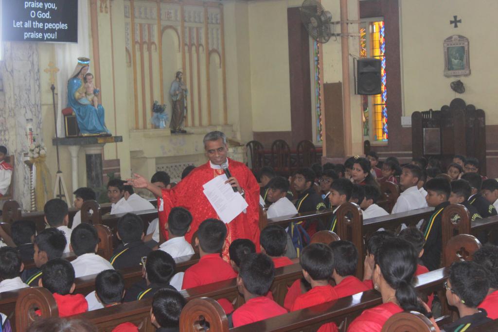 On 4th February 2025, St. Stanislaus High School celebrated the feast of St. John De Britto with great enthusiasm. The day began with the Holy Eucharist that was joyfully celebrated by Fr. Ivan D'Souza as the main celebrant. During his inspiring sermon, Fr. Ivan highlighted the remarkable life and virtues of St. John de Britto.