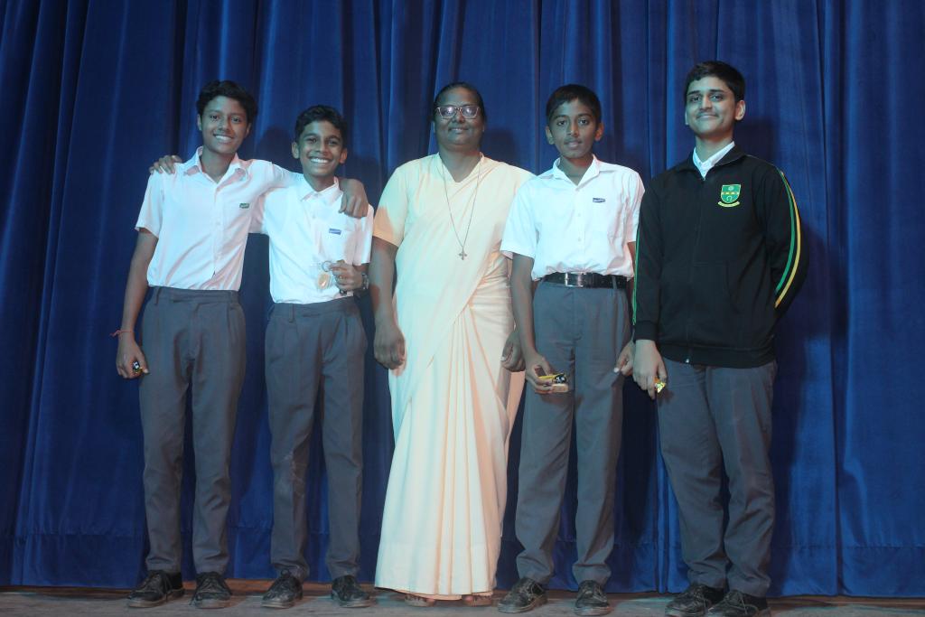 Thereafter we continued our celebration in the school auditorium, starting with a meaningful prayer and prayer dance. The boys then watched a thought-provoking video on the journey and life of our dear saint. Based on this video, a fun and exciting Quiz was conducted standard-wise for all our students. The excitement of our boys was unmatched and filled the air with joy.