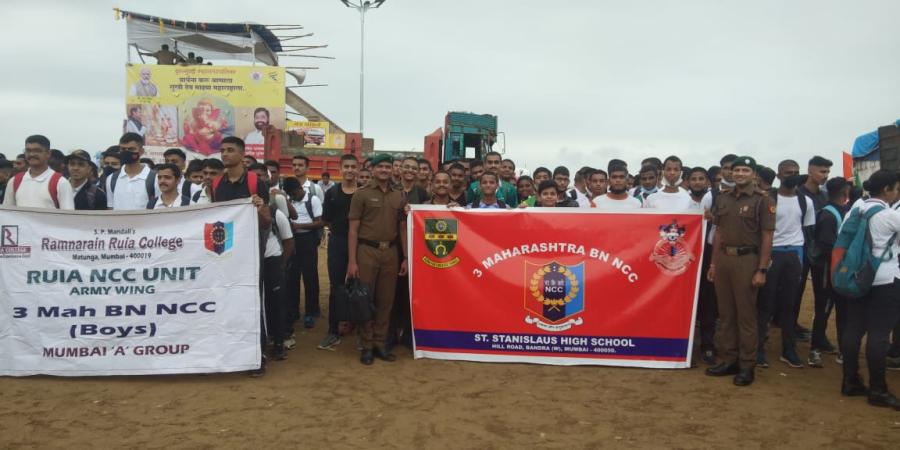 On 10/09/22, a mega Puneet Sagar event was organized today at Girgaun, Chowpatty. The Hon'ble Minister for Sports & Youth Affairs Shri Girish Mahajan & 2000 NCC Cadets participated in the event. Consequent to Anant Chaturdashi the pristine beauty of Chowpatty beach was restored. NCC cadets of St. Stanislaus High school along with their ANO'S T/O Nithiyanand and T/O Rostan were also given their part in the event. Jai Hind!