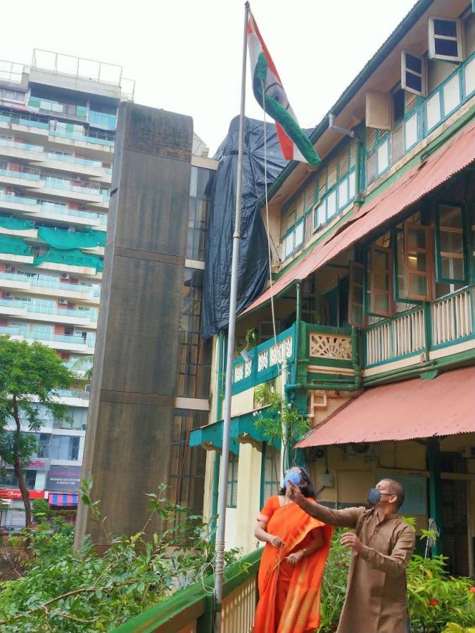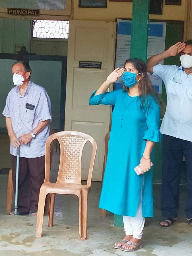 The chief guest for today's programme was the first lady principal pf our school Mrs. Anna Correa. The celebration was short, sweet, and message-oriented. Some students prepared a short video keeping in mind the present situations of this lockdown and its effects on people. The programme began with the flag hoisting done by the honorable chief guest Tr Anna and then to enhance the feeling of patriotism and remembering the struggle and hardships faced by our freedom fighters all recited the NATION ANTHEM. Keeping in mind the goal of keeping the flag of India very high all raised their hands in pride for the SALUTE.