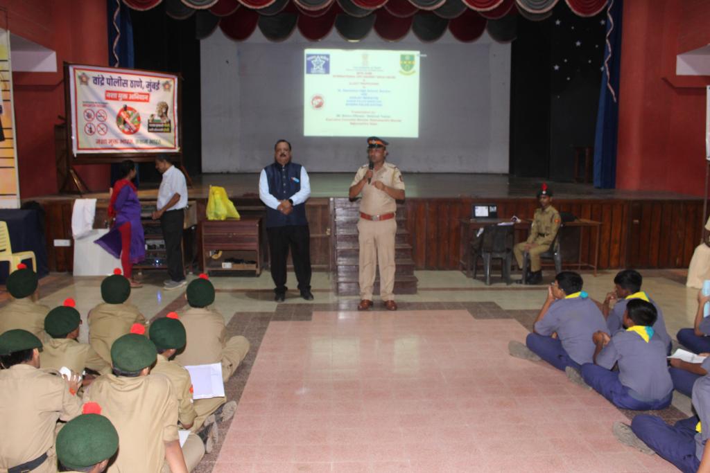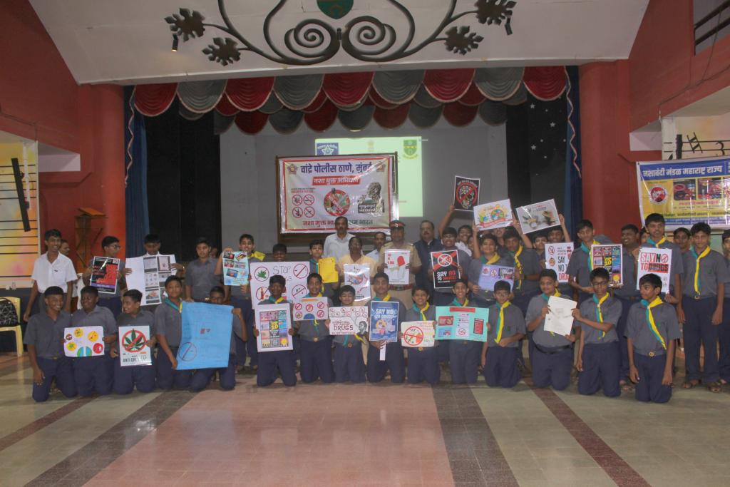 To Commemorate International Day against Drug Abuse and Illicit Trafficking an awareness program on the menace of Ill effects of drug abuse and how to prevent it was held by St Stanislaus High school in collaboration with Bandra Police Station for nearly 170 students of 9th Standard namely from Scouts, NCC (Army Wing) and RSP. The program consisted of a PPT presentation by National Trainer (for Addiction) and Executive Committee member of Nashabhandi Mandal Maharashtra Rajya Mr. Bo sco DSouza. This interactive session was much appreciated by all students. PI Bange of Bandra Police Station explained to the students how they could reach out to seek help in case of anyone using drugs. Principal Sr. Arockia Anthony also shared the support the school would give to prevent any addiction with anonymity .The program ended with a display of posters against drug abuse and an oath was led by lady Scout master Ms Nikita Chaterjee along with Mr Nityanand Ponraj (NCC Army Wing) and RSP Master Rakesh Pathak The program was well organised and Coordinated By Scout Master Elias Corriea.