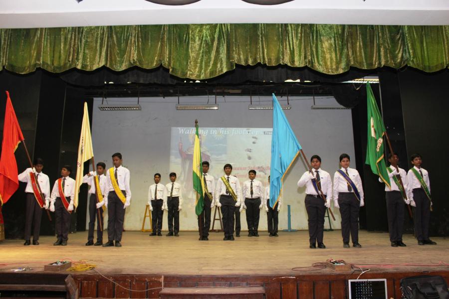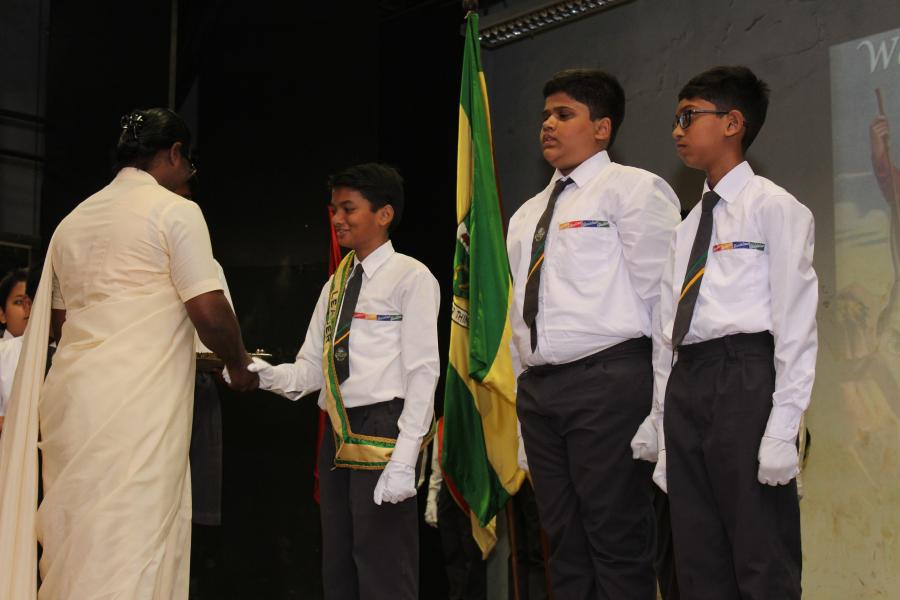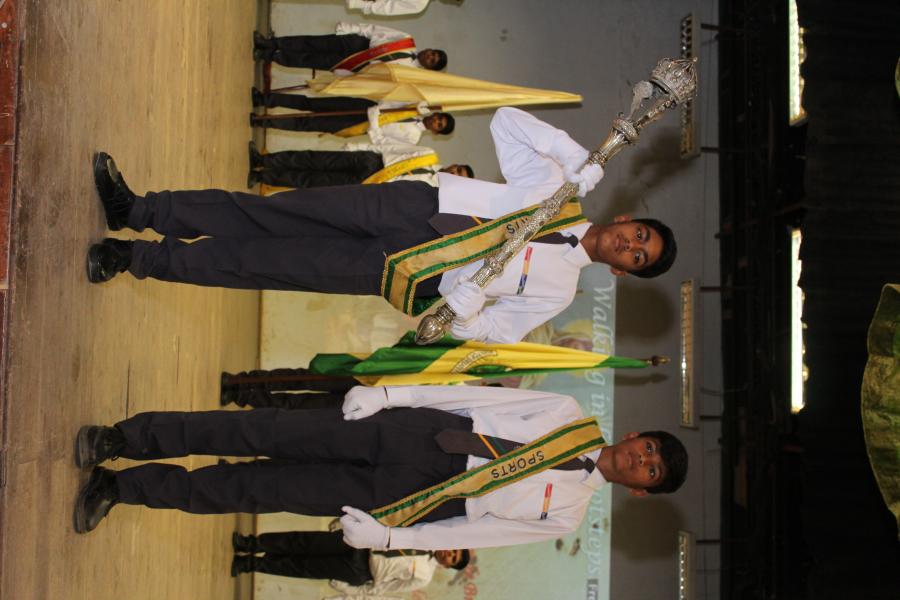 It started off with the School Council Members marching towards the stage with great pride. The outgoing School Captain handed over the school flag and his sash to the principal, who then bestowed the sash and the school flag to the newly elected School Captain. The School Captain and the Asst. School Captain had to take up their duties towards the school by saying the oath. After that, the house captains and the head leaders were bestowed with their sashes and badges, taking up the responsibilities for the year 2020-21. The sports captains were also bestowed with their sashes and the sports emblem putting forth their obligations in all the sports activities for the academic year.