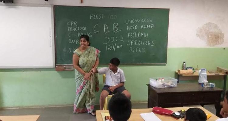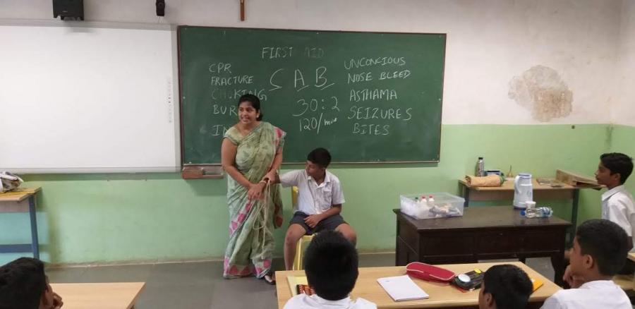 First aid training was conducted on 9th September by Dr Namrata Fernandes for Junior Red Cross boys in the model class room at 9:30 am, she has given Practical training as follows :