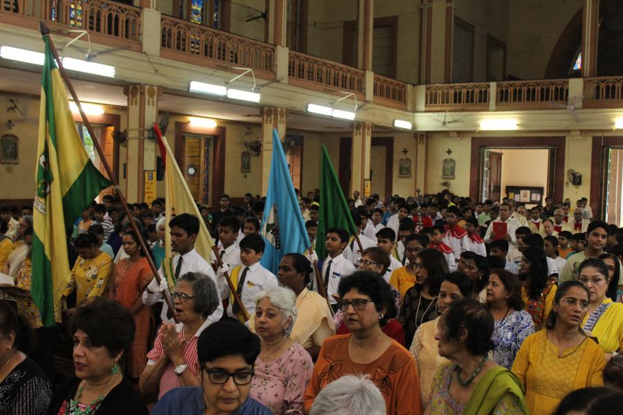 On the31st of July the school celebrated the Feast of St Ignatius of Loyola with great joy This is a very special day for the Jesuits. Celebrations began way in advance with a Canteen day organised by the teachers and students of std 10. A chart making competition was held for std 5th to 9th. To bring in the festive spirit the March of St. Ignatius was sung every day in school with great pride. The most awaited cultural programme began with a skit depicting the life of Ignatius. The school band added to the frolic and energy with their breathtaking performance. There was a Eucharistic celebration by our main celebrant, Fr. Charles followed by a brunch for the staff and retired teachers.