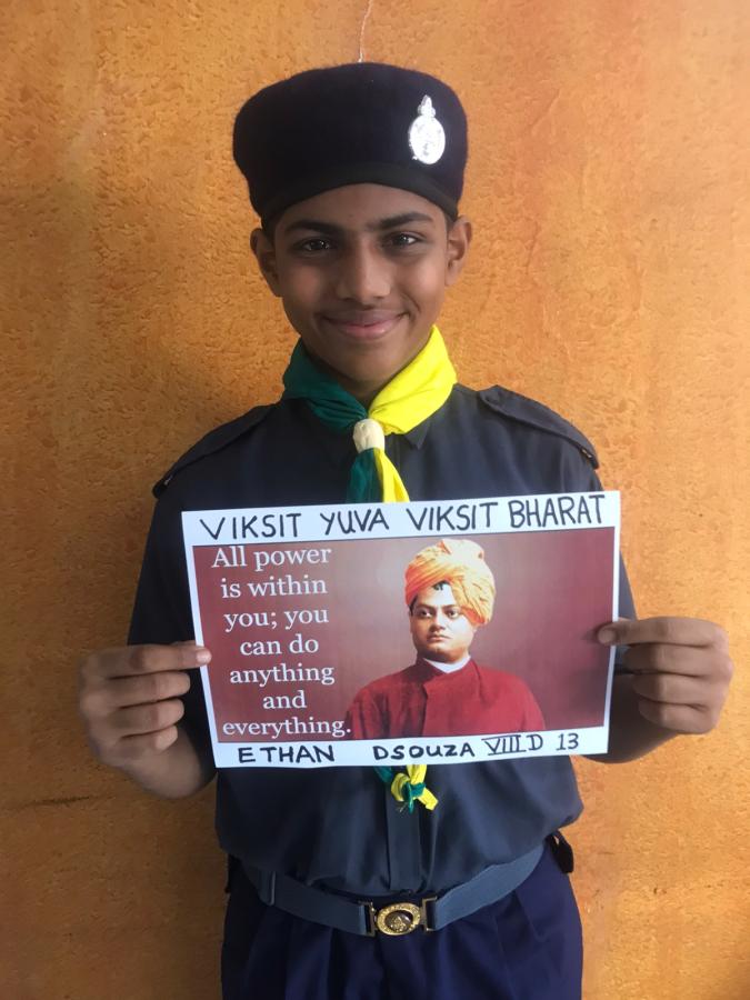 Scouts of St Stanislaus High school celebrated National Youth Day by making postures / Slogan writing and by keeping in mind the values of Swami Vivekananda.