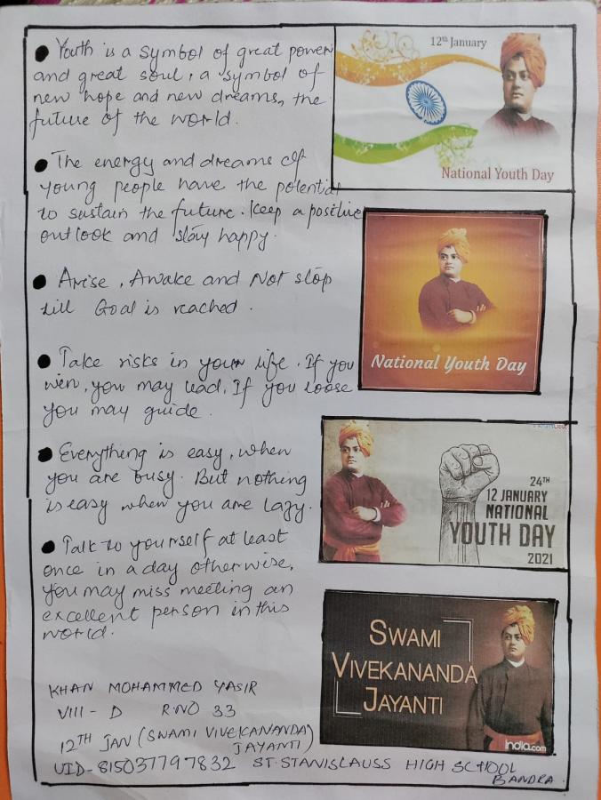 National Youth Day (Yuva Diwas) The Birth Anniversary of Swami Vivekanand was celebrated on 12th Jan.22 by the Scouts of St Stanislaus High school