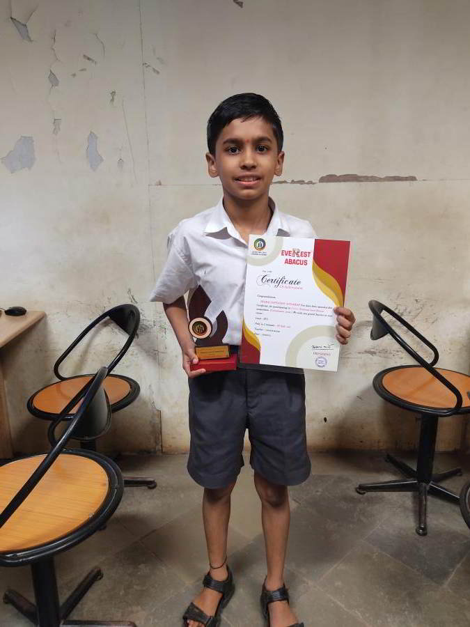 Swaraj Antarkar, a student in Class 6 C, was awarded certificate of achievement for participating in the Online National Level Abacus Competition.