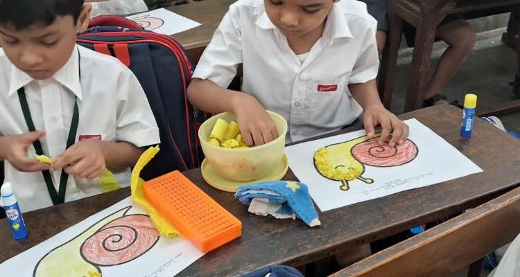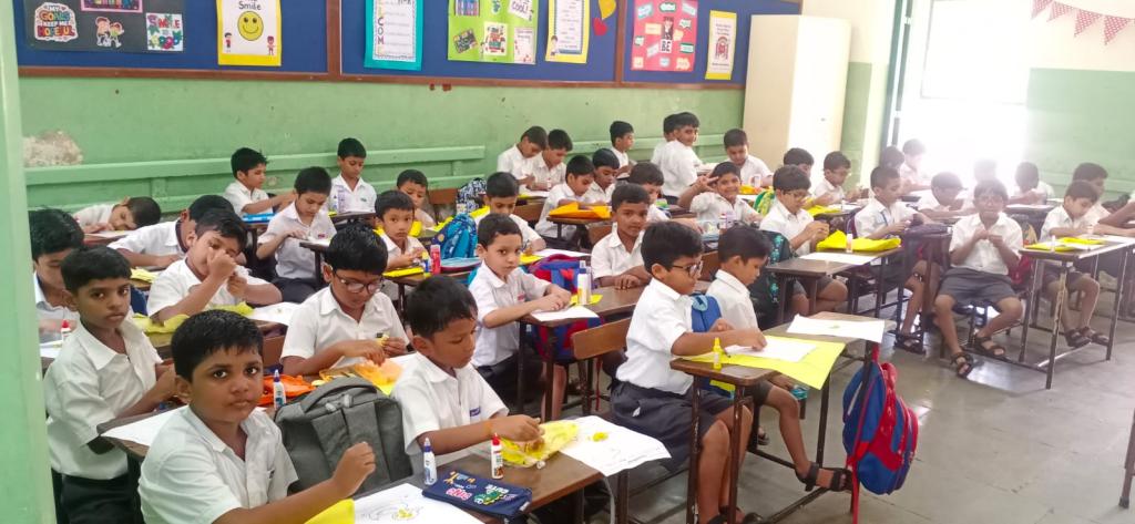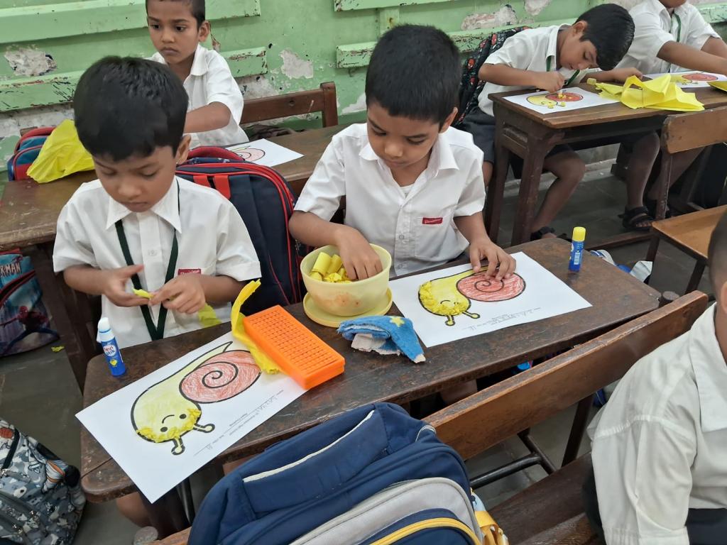 Each student had to crush paper into balls and stick them on a printed picture that was given to them. Teachers encouraged the students throughout the activity. The students followed the instructions given and were focused while doing their work. They worked in a neat and organised manner. It was a fun learning activity cum competition. Three winners were selected from each division and were awarded certificates.