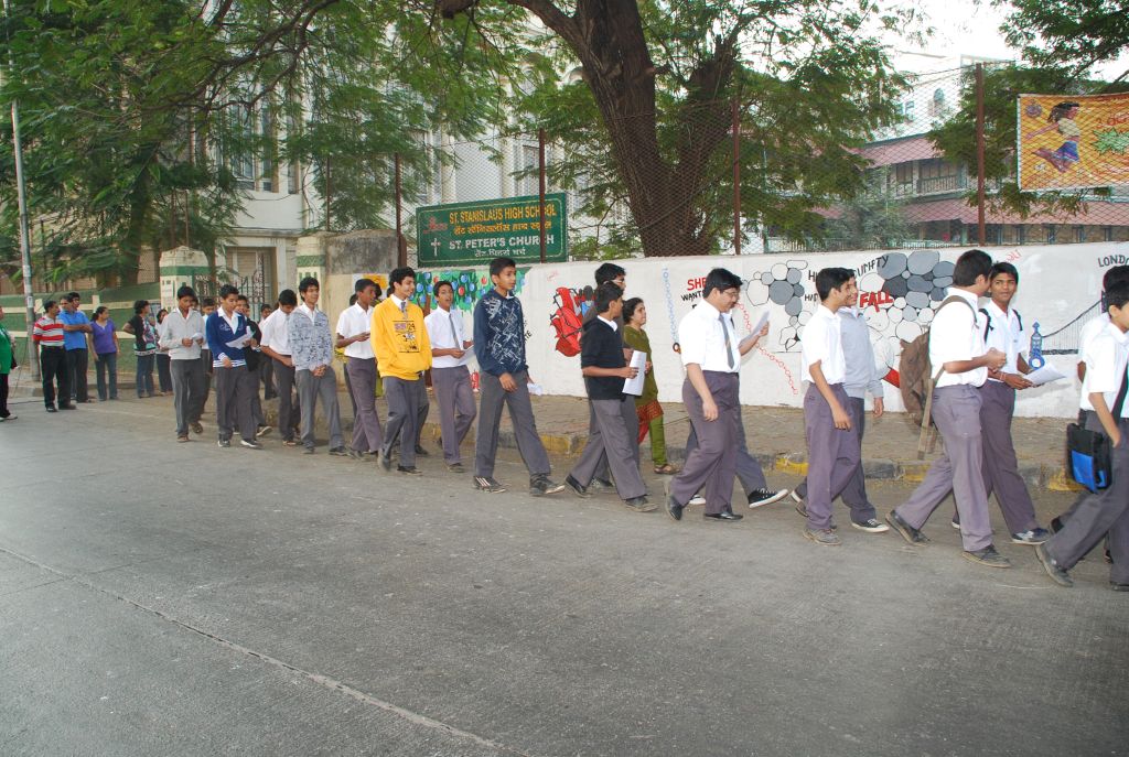 Boys at St. Stanislaus School celebrated the ‘Feast of the Immaculate Conception of Mary’ on 8th December 2010. As an annual tradition, a pilgrimage to Mt. Mary’s Basilica was held to thank Our Lady for sparing the boarders of St. Stanislaus School from the epidemic of plague years ago and to pray to Our Lady invoking her blessings on the students of Std.X before the SSC Board Exams.Fr. Errol Fernandes S.J., the new Manager of St. Stanislaus School was warmly welcomed by the Staff and students as he exuberantly celebrated the Eucharist with his 3 fold message – to be happy with one’s self, to make the best of the present moment and to be of service to others.