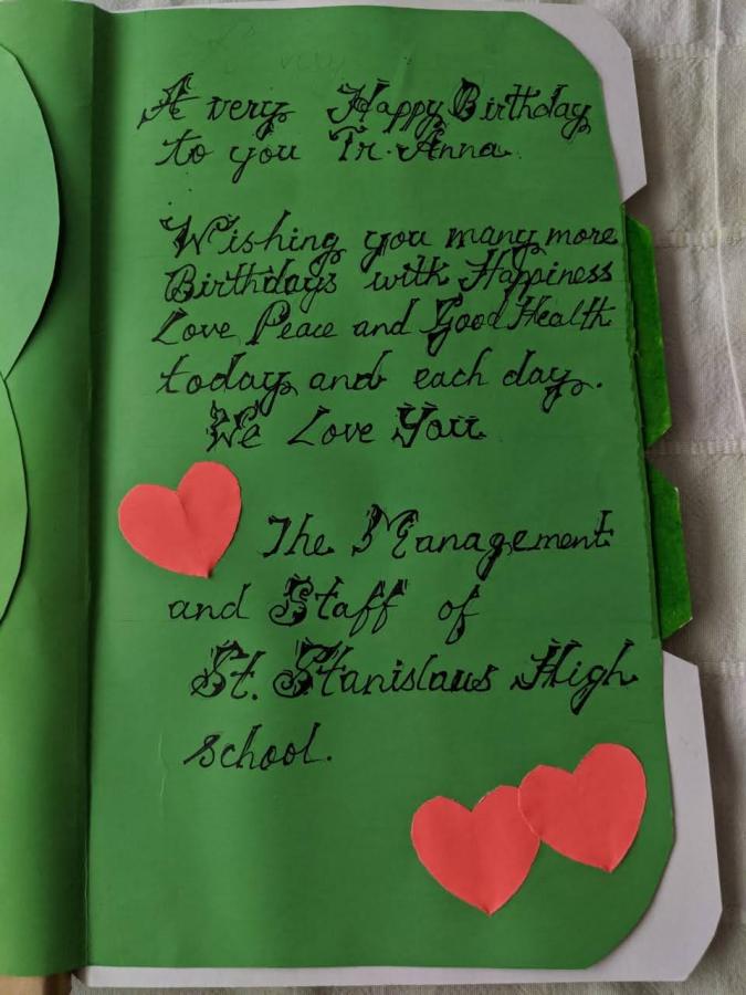 Principal's day was celebrated on 7th September 2020. The programme began with the Eucharistic Celebration in honour of Principal Anna Correa on her birthday. The main celebrant was Bishop John Rodrigues. This was followed by an online celebration keeping with the norms during this Pandemic. The committee headed by Tr. Cinderella D’mello organized a creative programme which included prayers, wishes and videos of birthday messages from all sections of St. Stanislaus. There were words of high praise from Fr. Frazer and Sr. Arockia. A video going down memory lane was followed with gifts of cards and bouquets and cutting of the cake which were much appreciated by Principal Anna. The programme concluded with a vote of thanks by Tr. Sabita.