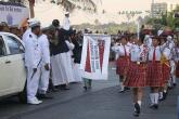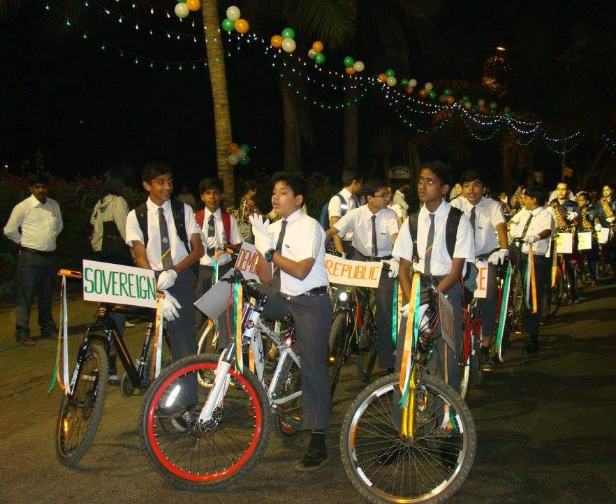 The parade was led by a cavalcade of horses, trained and provided by the Amateur Riders Club, Mumbai, followed by cyclists from different schools bearing environment friendly messages, marchers from the 22 schools trained by senior NCC Officers, Mumbai. And floats depicting the cultural diversity of our country.