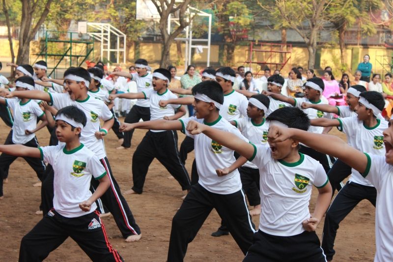 The NCC boys proudly escorted the chief guest along with Vice Principal Fr. Malcolm to the stage. The program began with the chief guest unfurling the Indian Tricolour Flag with the assistance of Sir Rostan. This was followed by the National Anthem. Master Romeo Koli then recited the pledge after which Master Akaash Ranade enlightened all of us with his motivating and patriotic speech. The primary boys then set the stage on fire with their energetic performance which highlighted Unity in Diversity. The dance was followed by the secondary boys who awakened the patriotic spirit in everyone with their performance ‘Suno Duniya Gaur Se Walo’. Items concluded with the secondary boys who performed a very heartening, meaningful skit. Karate a sport for self defense taught in our school was showcased by the boys of STD 5 and 6.