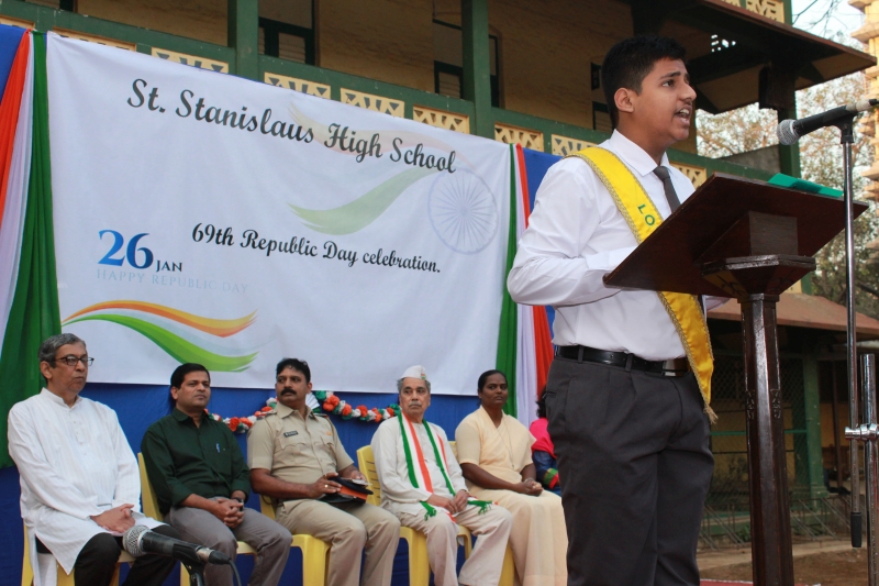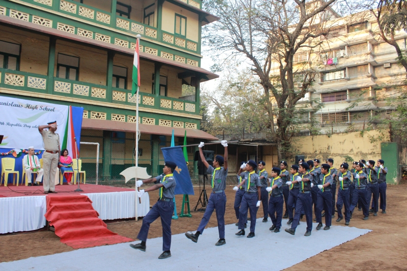On the 26th of January the boys of St.Stanislaus High School celebrated Republic Day with great patriotism and pride. The boys assembled on the school grounds at 7:30 a.m. to welcome the chief guest Mr. Pramod Kumbhar, Assistant Police inspector of Mumbai Police in the Anti – Narcotic Cell.