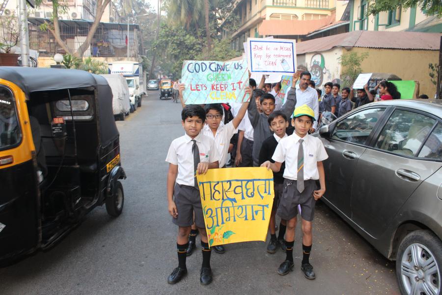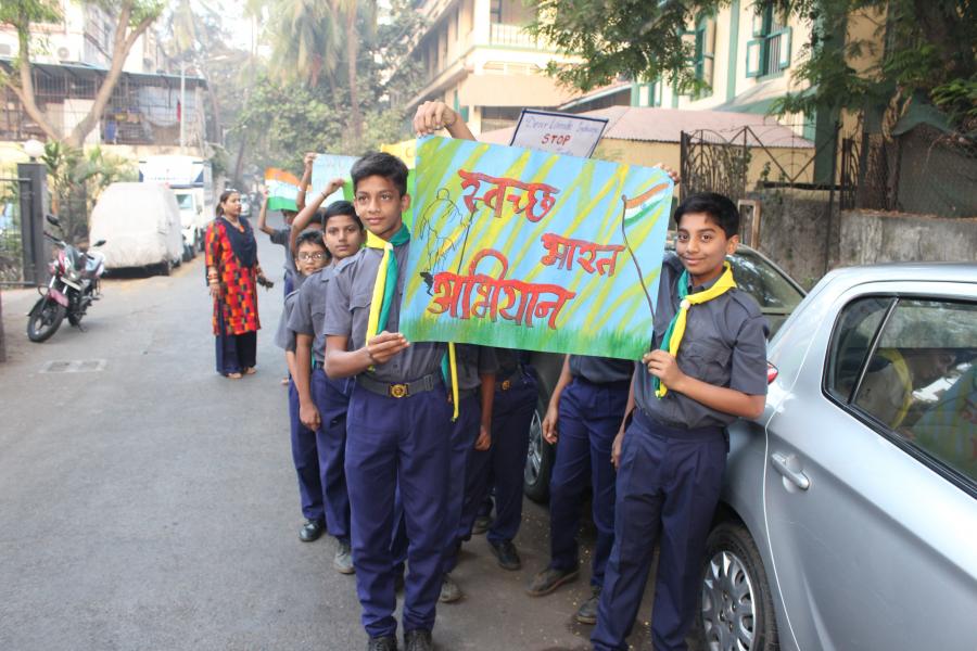 On 28th January 2019, the school R.S.P. squad had a rally spreading awareness on Road Safety. There were three schools who participated in this rally. The programme began with the hoisting of the R.S.P. flag by Sub police inspector Manoj Godase. The R.S.P. pledge was then taken by Master Durwin Britto. The rally, then began from the school ground to Mehboob Studio, (Bandstand). Our boys marched on the street displaying placards and charts on topics like ‘Do not drink and drive’, Zebra crossing is meant for pedestrians only’, ‘Use of Helmet/Seat belts’ and Make way for the Ambulance’. Apart from the rally there was a short programme organised in school where schools from all around Bandra participated in. Our dignitaries addressed the students about the Importance to road safety and duties as citizens.
