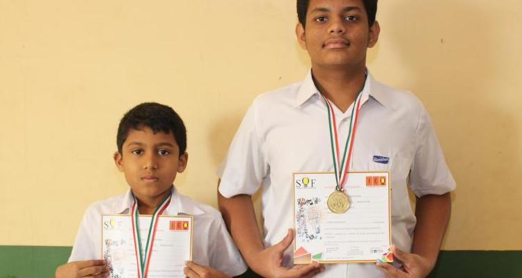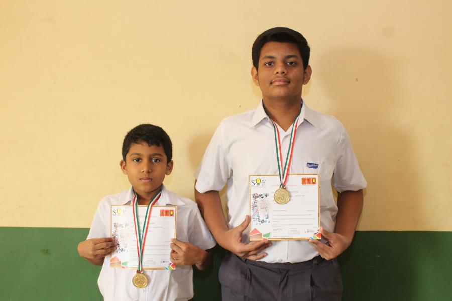 Chris Dias and Myron Pesso awarded a Gold Medal in the SOF International English Olympiad at the school level under std 5 and std 9.