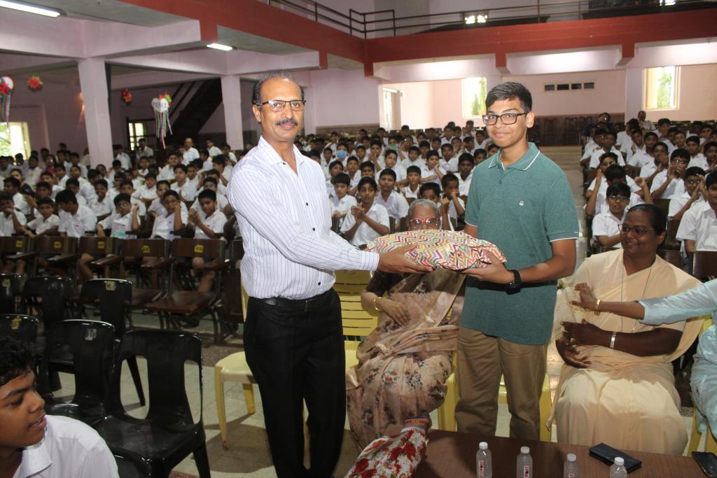 Following the prayer, the chief guest Tr. Rubina Jaffer (retired teacher of St. Stanislaus High School) and Mustafa Khety (SSC topper 2025) were warmly welcomed and felicitated by the school authorities. The chief guest shared encouraging words, urging students to carry forward the values they have learned.