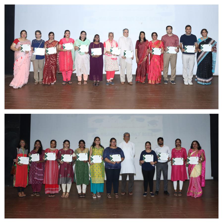 The students of batch 2021-22 who had successfully completed the programme were felicitated during the Graduation Day function. Along with the Manager Fr. Frazer Mascarenhas S.J., Principal Sr. Arockiammal Anthony, Vice -Principal Fr. Felix Dsouza S.J., Supervisor Ms. Charmaine Pereira, students and staff, the parents of the graduates were also gathered in the school auditorium. The function was graced by notable personalities who had been instrumental in the initiation and success of this programme. Fr. Jude Fernandes S.J., who was the Chief Guest, had initiated the original enrichment programme called JCP (Jesuit Certificate Programme) at St. Stanislaus High School. The Guest of Honour was Mr. Venkatesh Srinivasan, an ex-Stanislite and part of the JCP. Mr. Russell Fernandes Ex Stanislite and part of JCP), Dr. Vivien Amonkar (Ex Vice- principal of St. Xavier’s College and current Director of the SSCP) and Ms. Anna Correa (Ex Principal of St. Stanislaus High School and current Principal of St. Stanislaus International School) were the other esteemed guests in attendance.
