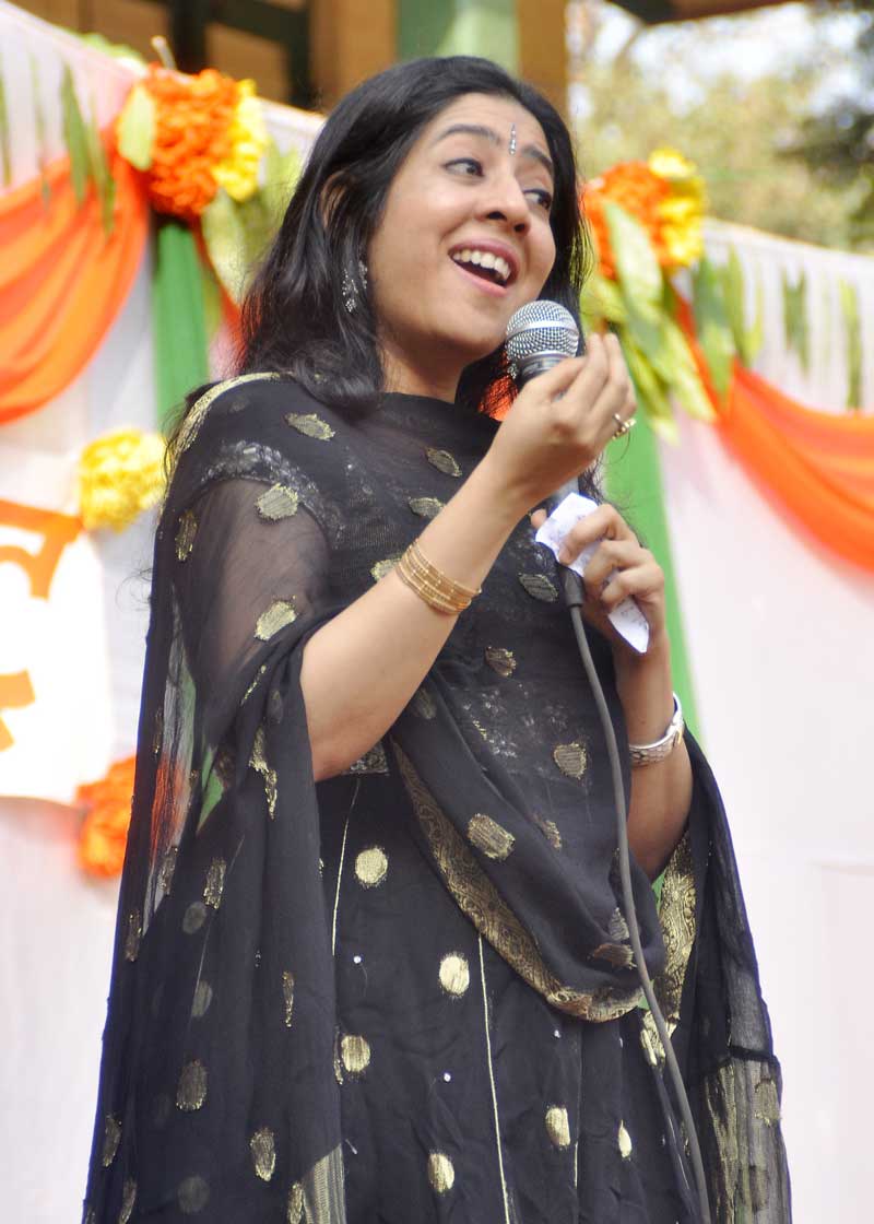 Present as Chief Guest was Dr. Girish Oak (Marathi Theatre artist and actor) and Guest of Honour Ms. Sanjivani Bhelande (playback singer). Dr. Oak in his speech, praised the students for displaying their efforts in speaking the Marathi language even though we are an English Medium School. Many pronunciations sounded new to him. We need to move ahead boldly and the first step has already been taken. Ms. Bhelande displayed her rich voice by singing a few songs for the audience in Marathi. She mentioned that Marathi culture is simple and rich and needs to be lived with a simple lifestyle.