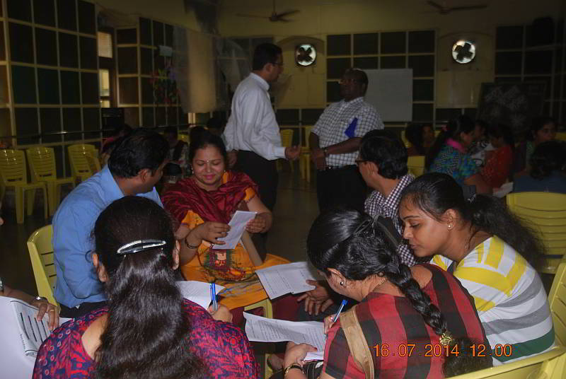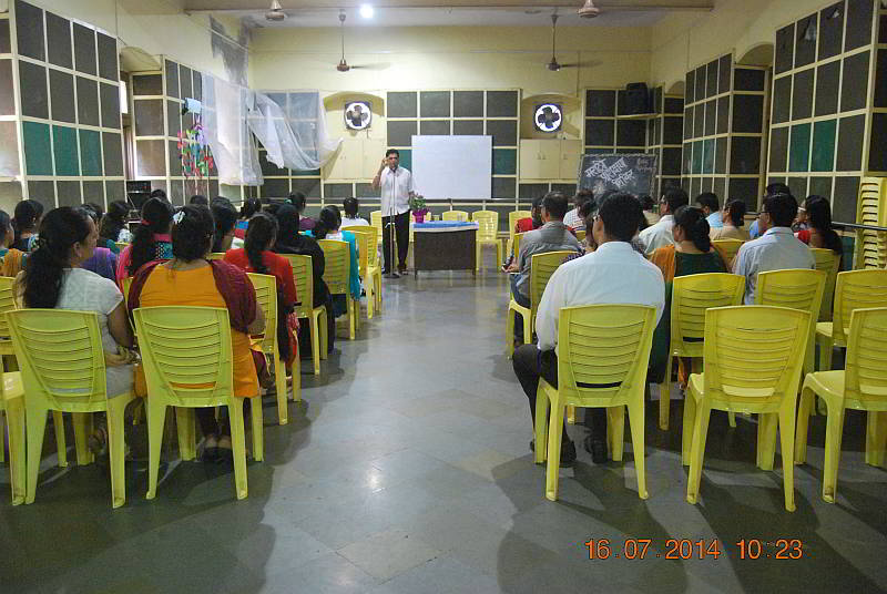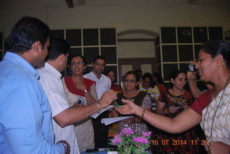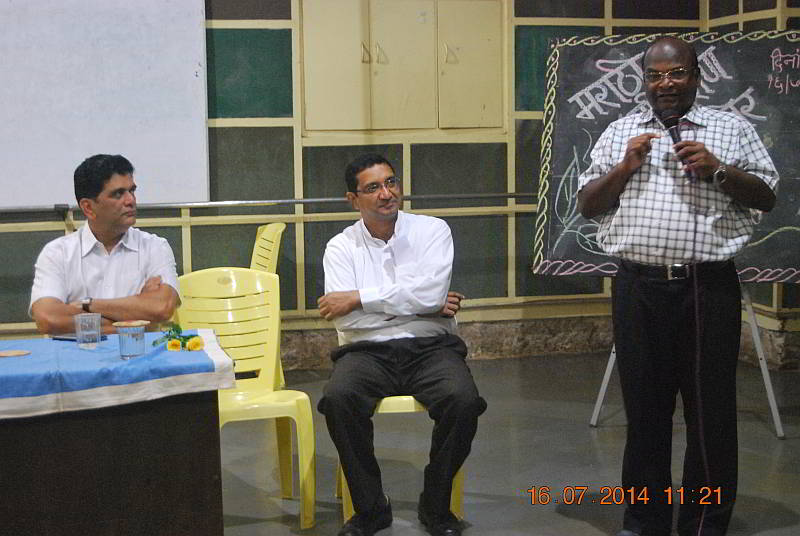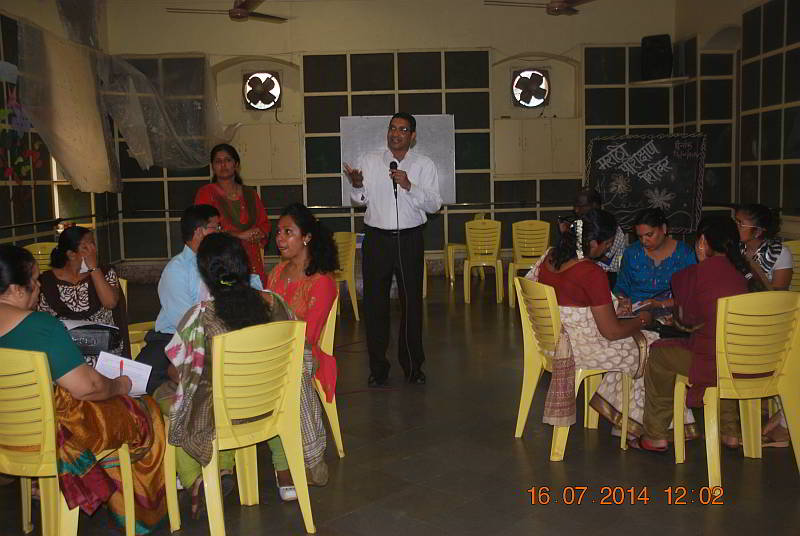 Dr. Girish Oak a well known Marathi theatre and film personality, addressed the Marathi faculty teachers from 20 schools in Bandra at St. Stanislaus High School on 16th July 2014. He enthused the audience into teaching Marathi with vigor and style. Dr. Oak discussed how Marathi can be conveyed in the most attractive way to students. He laid stress on the proper pronunciation of Marathi words being taught to the students. His personal experience in Theatre and film brought in a new way of teaching the subject Marathi in classrooms which is a unique way of merging life skills. He left his audience spell bound. Teachers later discussed how these skills can be used in classroom teaching.